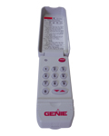 3-button remote control transmitter model GTC-3 for Genie garage door openers. 390MHz Gate + 2 Button Remote. Visor clip and 9V battery included. |